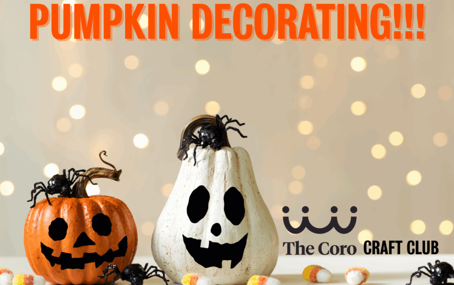 Join our family friendly Coro Craft Club for a special morning of Halloween pumpkin decorating! Free to attend and all materials provided. We will have a small supply of pumpkins but please bring your own if you are able! All welcome